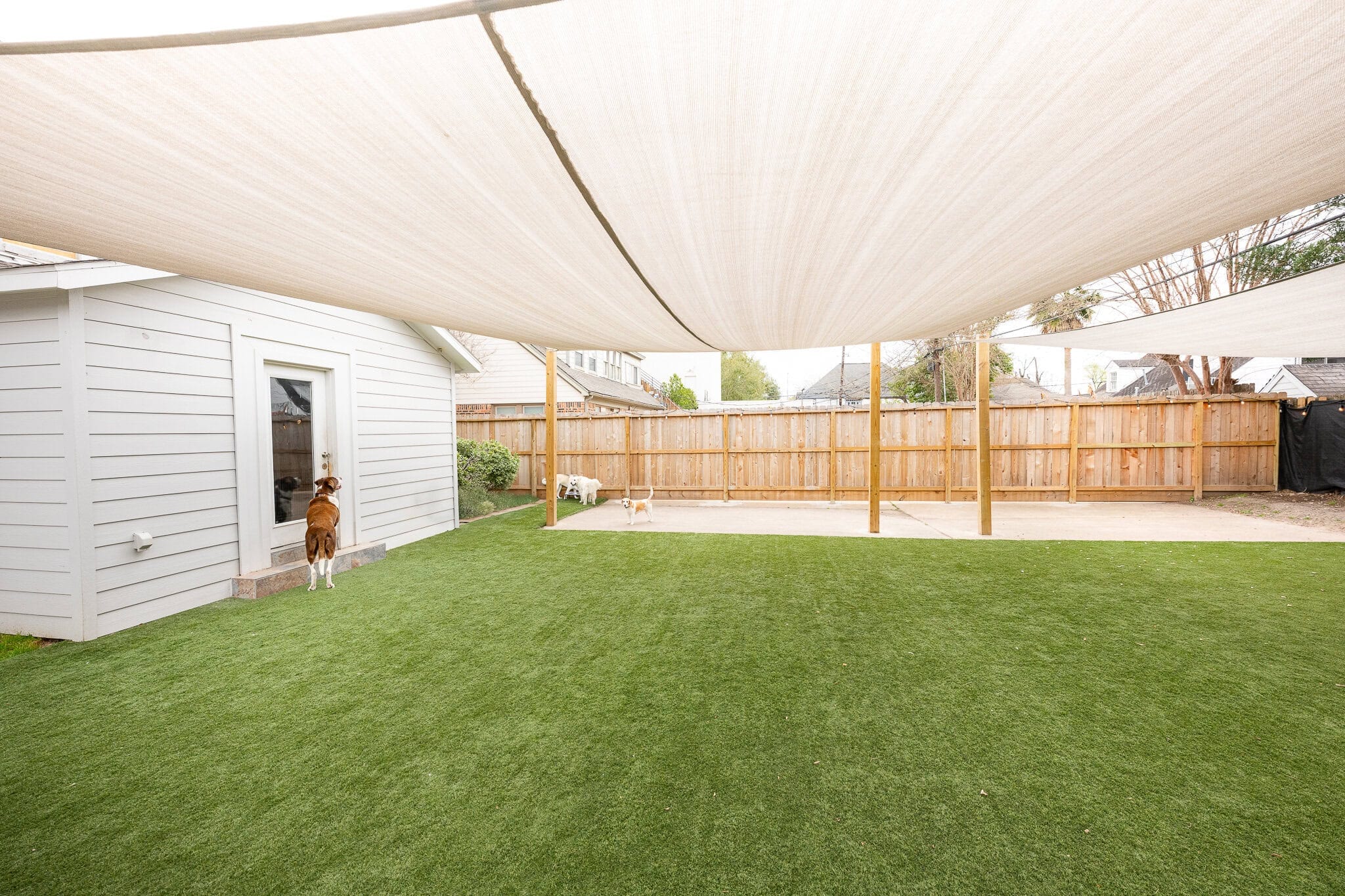 They’ll also enjoy ample outdoor playtime in our covered backyard with premium Astroturf. Our goal is to provide a seamless and enjoyable stay for your dog, so you can have peace of mind during your travels.